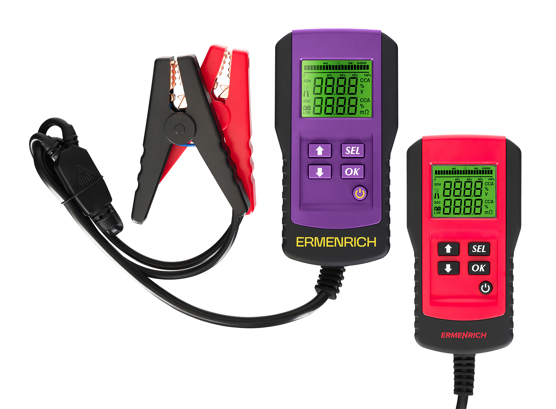 Tester autobaterií Ermenrich Zing AL45 je intuitivní přístroj, který umožňuje rychlou kontrolu stavu autobaterie nebo zdroje nepřerušovaného napájení (UPS). Tester se připojuje k anodě a katodě pomocí dvou svorek. Stejným způsobem se tester také nabíjí – není zapotřebí žádný další zdroj napájení.