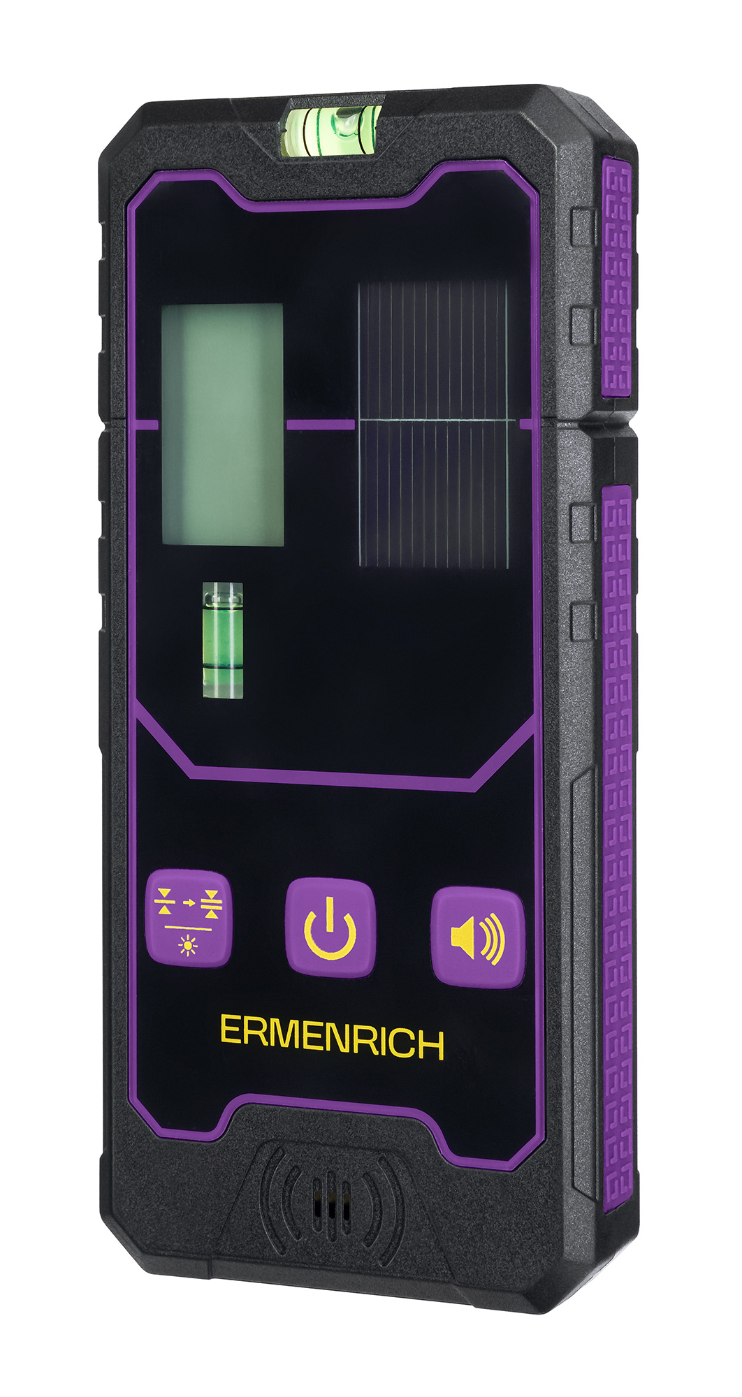 Ermenrich LR20 je přijímač laserového paprsku pro použití s laserovými nivelačními přístroji. Rozpoznává zelené a červené laserové paprsky na vzdálenost až 50 metrů. Přístroj má dvě nastavení přesnosti nivelace: vysokou přesnost s přesností 2 mm a nízkou přesnost s přesností 3 mm. Po zachycení laserového paprsku se rozsvítí indikátory a zazní bzučák. Hlasitost je nastavitelná a bzučák lze v případě potřeby zcela vypnout.