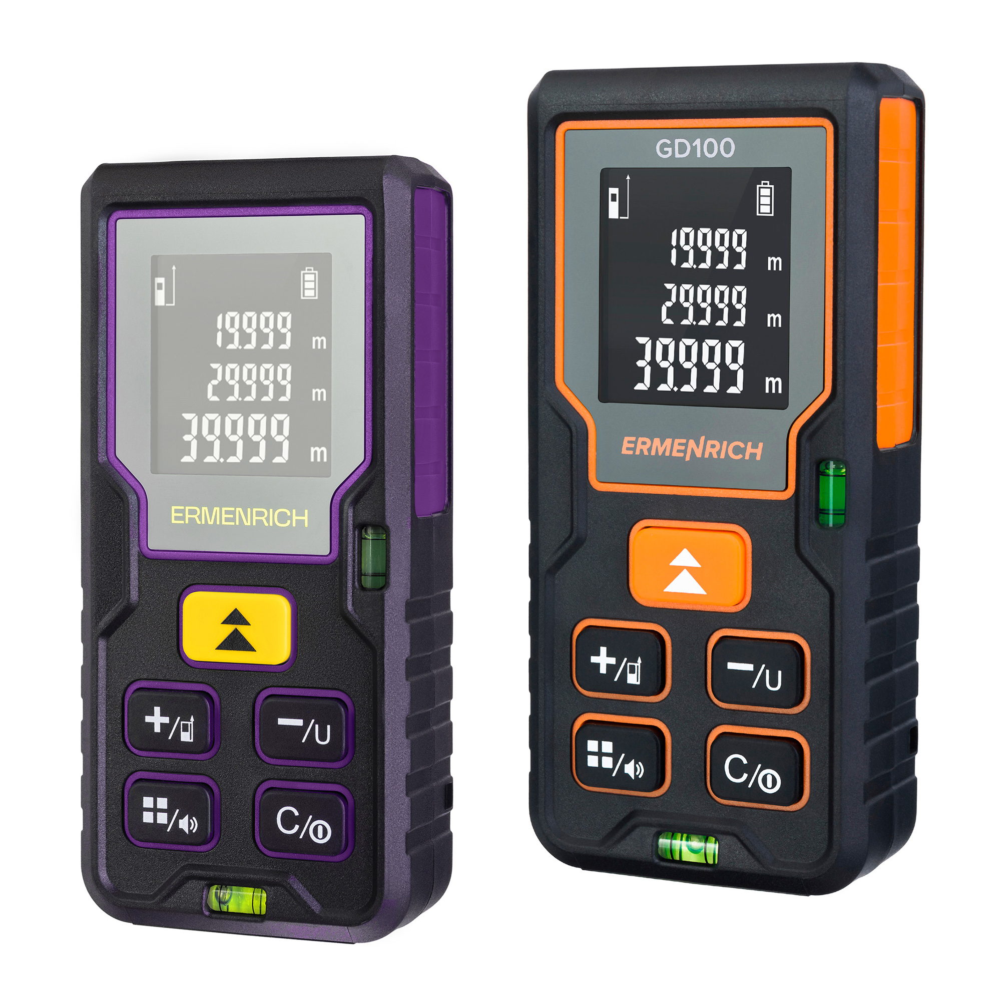 Laserový měřič Ermenrich Reel PLUS GD100 je multifunkční přístroj pro řešení široké škály úkolů v oblasti strojírenství, stavebnictví a renovačních prací. Nejlépe se hodí pro lineární měření a měření plochy a objemu velkých místností – až do 100 metrů na jedné straně. Kromě jednotlivých měření můžete také automaticky skenovat místnost. Údaje se zobrazují na třířádkovém LCD displeji a současně lze uložit až 20 skupin výsledků měření. Je možný provoz bez zvukových upozornění.