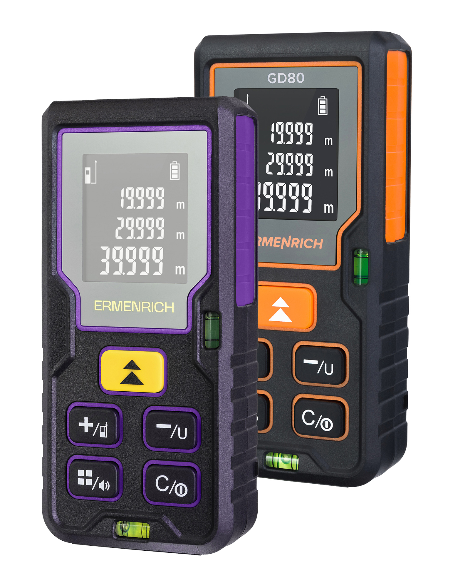 Ermenrich Reel PLUS GD80 je laserový měřič určený k měření široké škály lineárních rozměrů a vzdáleností, ploch a objemů. Tento přístroj je spolehlivým a funkčním nástrojem pro stavební a renovační práce, měření dlouhých obrobků a výrobků ve výrobních procesech i pro geodetické práce. Pracovní rozsah přístroje je 0,05 až 80 metrů. Software umožňuje provádět jednotlivá i hromadná měření (režim kontinuálního skenování). Při práci v náročném pracovním prostředí vypočítá funkce Pythagorovy věty vzdálenost mezi dvěma body pomocí mezilehlých měření.